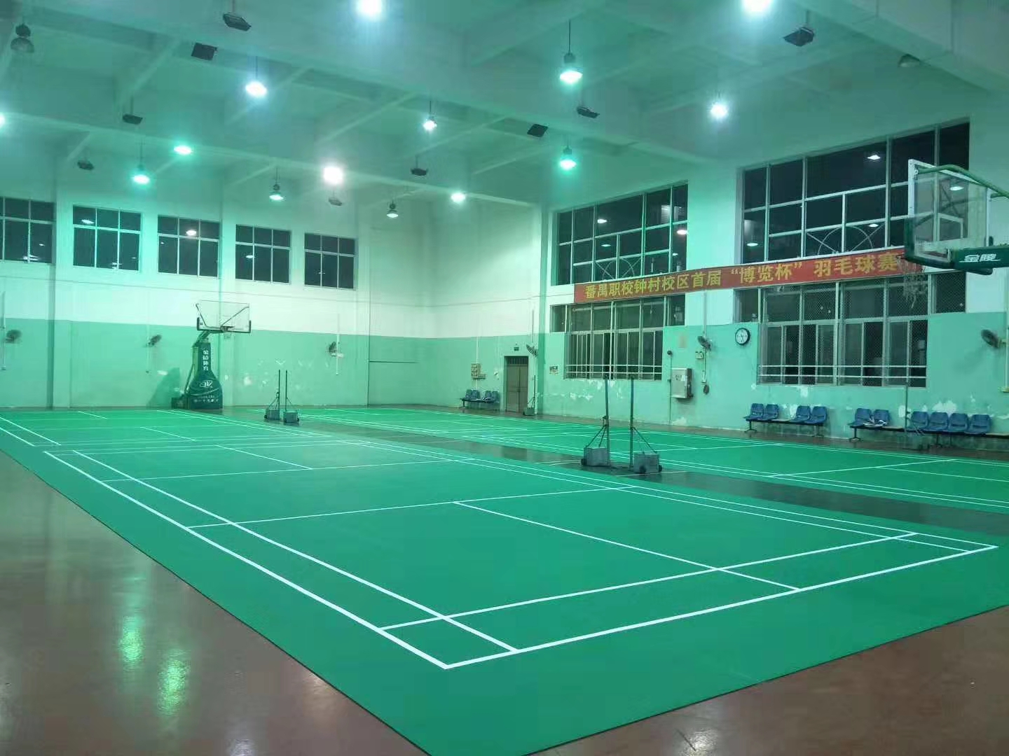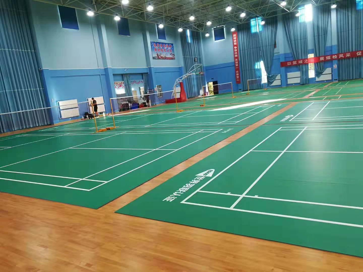 羽毛球運動現(xiàn)在特為普及,屬于在所有體育運動中普及最為廣泛的一類了,目前制約廣大羽毛球愛者的就是場地問題,羽毛球場的建設(shè)占地比較難。在一些單位、學(xué)校、政府等部門里,羽毛球場經(jīng)常是與其他場地比如籃球場、活動臺、舞蹈臺等等交叉使用,導(dǎo)致在其他情況下需要拆卸移動羽毛球場,而常規(guī)的地膠產(chǎn)品無法滿足,普通焊接的地膠場地在拆卸之后出現(xiàn)變形、鼓包等問題,并且拆卸難度比較大,基于此情況的需求,我們推出可移動式、魔術(shù)貼、可拆卸羽毛球場,極大滿足客戶需求。