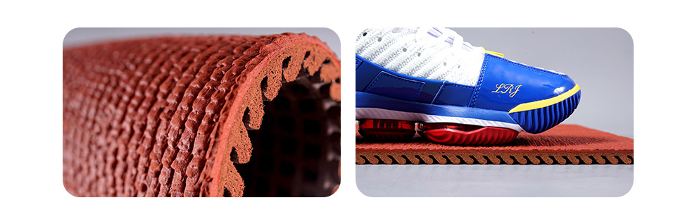 l安全: 獨特的表面凸紋和底部凹巢設計提供了合適的沖擊吸收和能量回送系統,這在有效提高運動成績的同時也保證了運動的安全性。