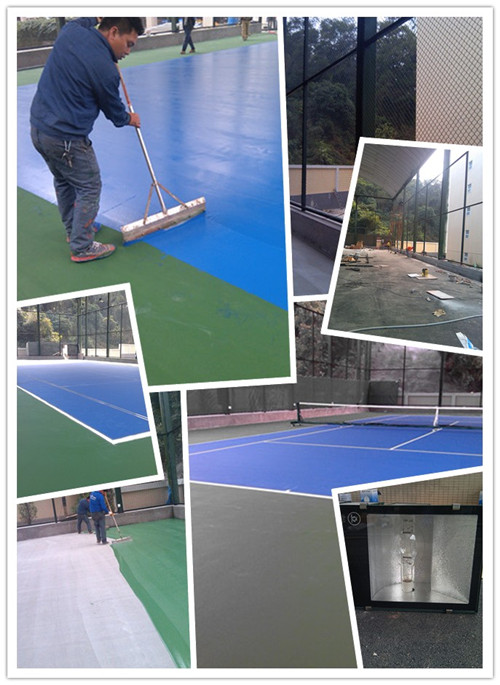 2、基礎增強層:一種不含石棉.與石英砂混合使用的丙烯酸乳液鋪涂層具有滲透性好、強度大的特點。能增強場地的強度、平整度和使用壽命。