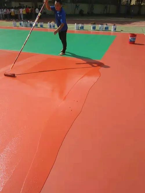 這種情況一般會發(fā)生在場地修補的時候,籃球場維修時,面漆會多次滾涂,每平方用量很容易就會達到0.5Kg,這不僅會造成材料的浪費,也會導致面漆的脫落。