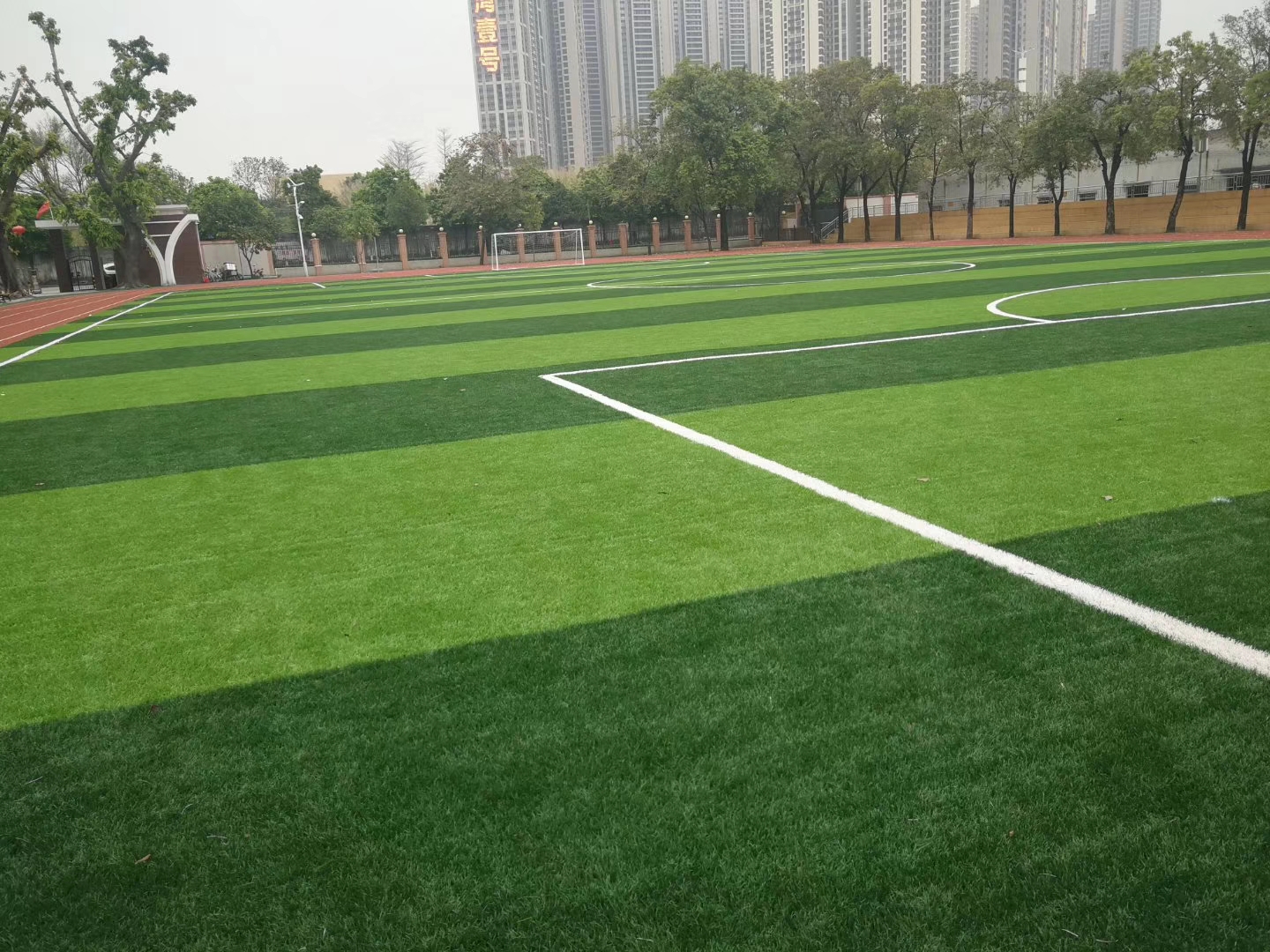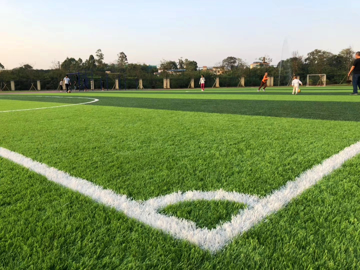 安全性好。運用醫學和運動學等原理,使運動者在草坪上運動時,韌帶、肌肉、關節等受到保護,摔倒時的沖撞力和摩擦力大大減少。平均使用壽命10年以上。足球場的各種劃線在生產時已用白色草苗一次成型屬于環保產品,它不含任何有害物質,并且有吸噪音功能。