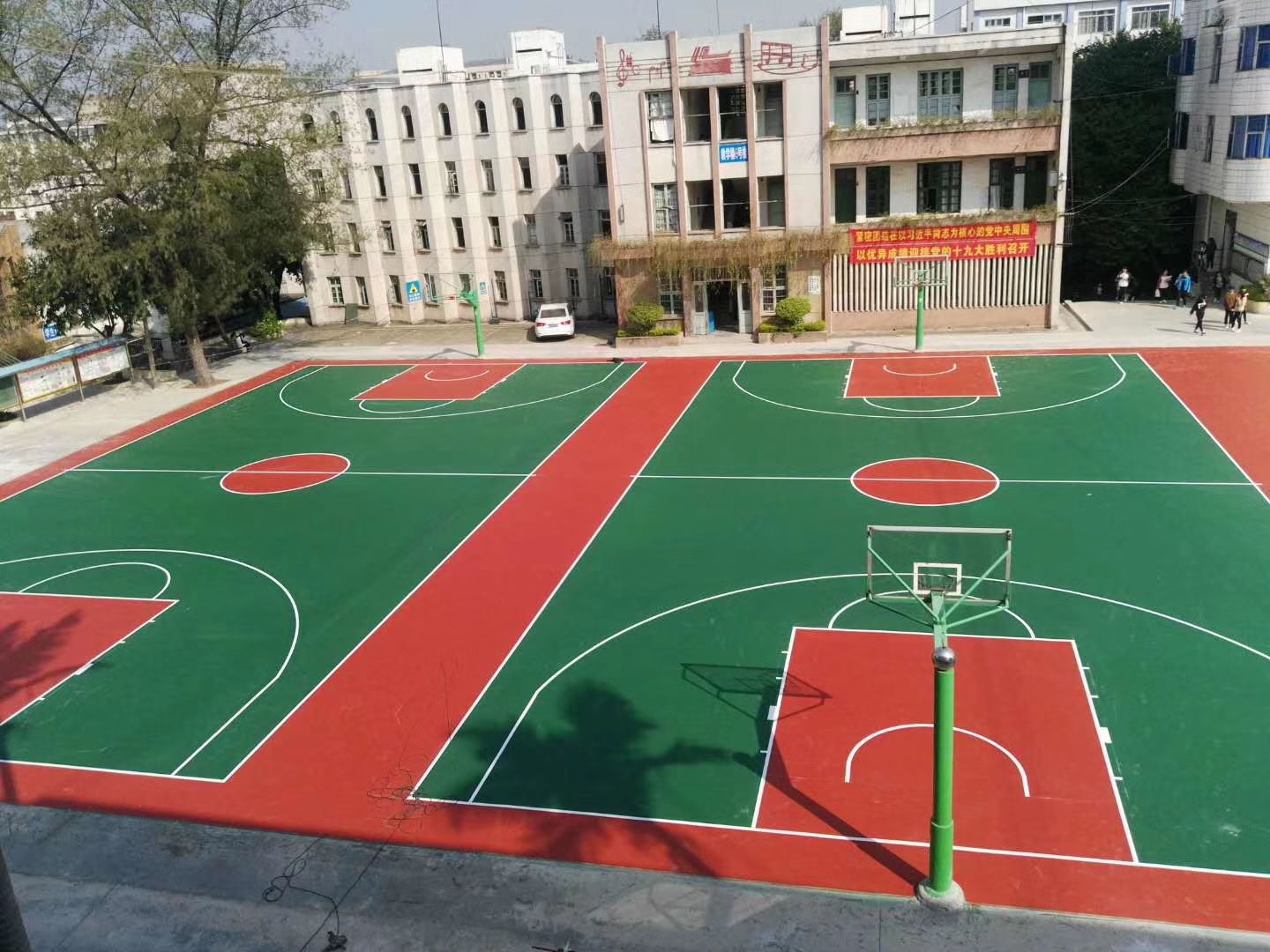 建設籃球場選擇塑膠硅PU面層是最好的面層