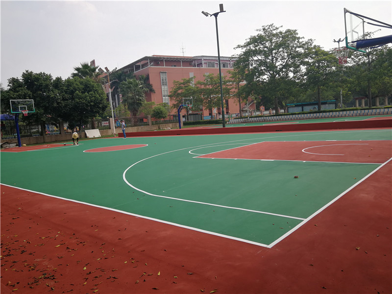 優越耐候性:PU籃球場球場不會因紫外線、臭氧、雨水及高低溫氣候等環境改變而發生褪色、粉化、發硬、發軟等現象,并能長期保持其鮮艷的色彩。正常情況下,可以保證五年不變色,十年不改彈性的使用時間!